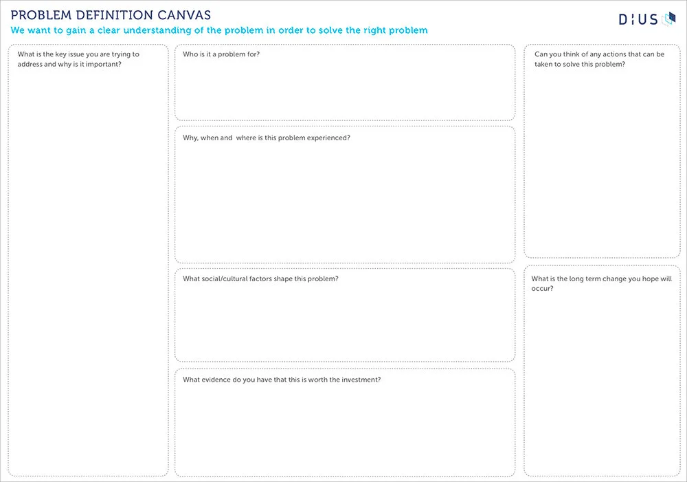 Collaboratively fill in the canvas for each problem. Then prioritise each problem by setting criteria that is important to the business, for example highest business value and customer value.